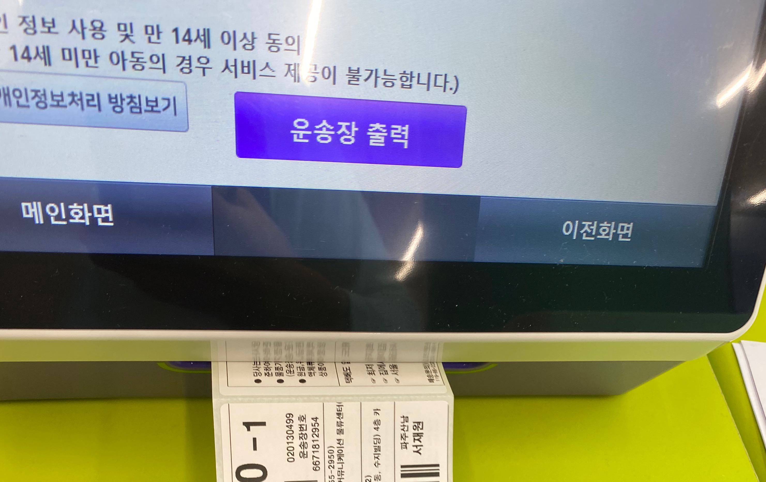 편의점 택배 무인기에서